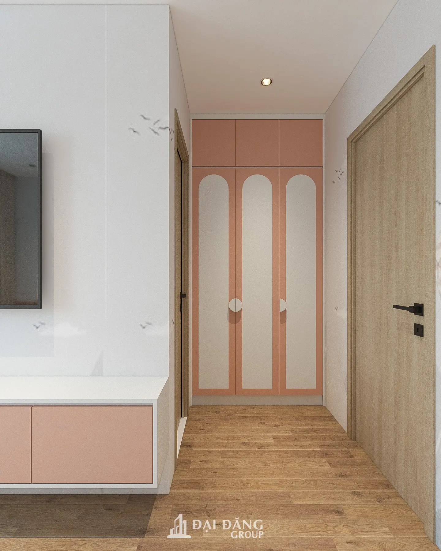 Thay vì những gam màu sặc sỡ truyền thống dễ gây mỏi mắt, Đại Đăng Group đã thực hiện biên soạn không gian dựa trên tông màu hồng phấn phối hợp cùng cam đất và kem dịu nhẹ. Đây là kịch bản màu sắc được nghiên cứu kỹ lưỡng để tạo cảm giác an yên nhưng vẫn đầy năng lượng tích cực.