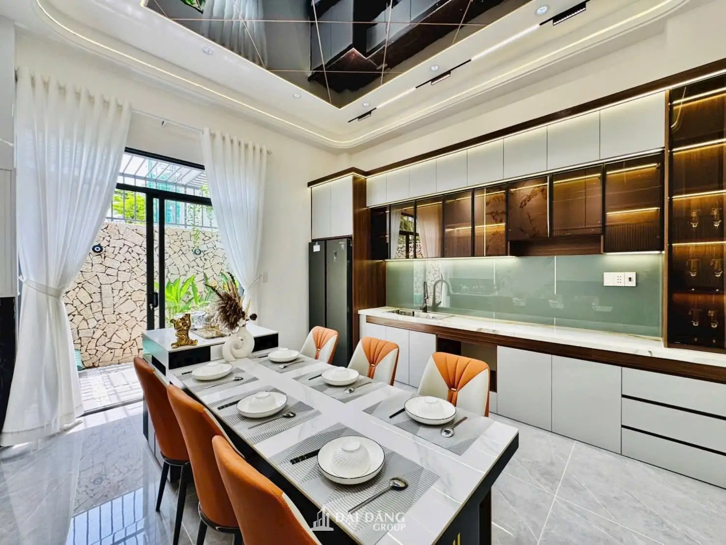 Khi diện tích đất đô thị ngày càng đắt đỏ, việc tối ưu hóa diện tích theo chiều cao là lựa chọn tất yếu. Tuy nhiên, để tạo ra sự khác biệt, thiết kế nội thất nhà phố cao cấp cần sự kết hợp giữa vật liệu quý hiếm và giải pháp kỹ thuật thông minh. Tại dự án The Elite Villa, Đại Đăng Group đã sử dụng các hệ vách đá xuyên sáng, kính màu và gỗ tự nhiên để khẳng định vị thế của gia chủ.