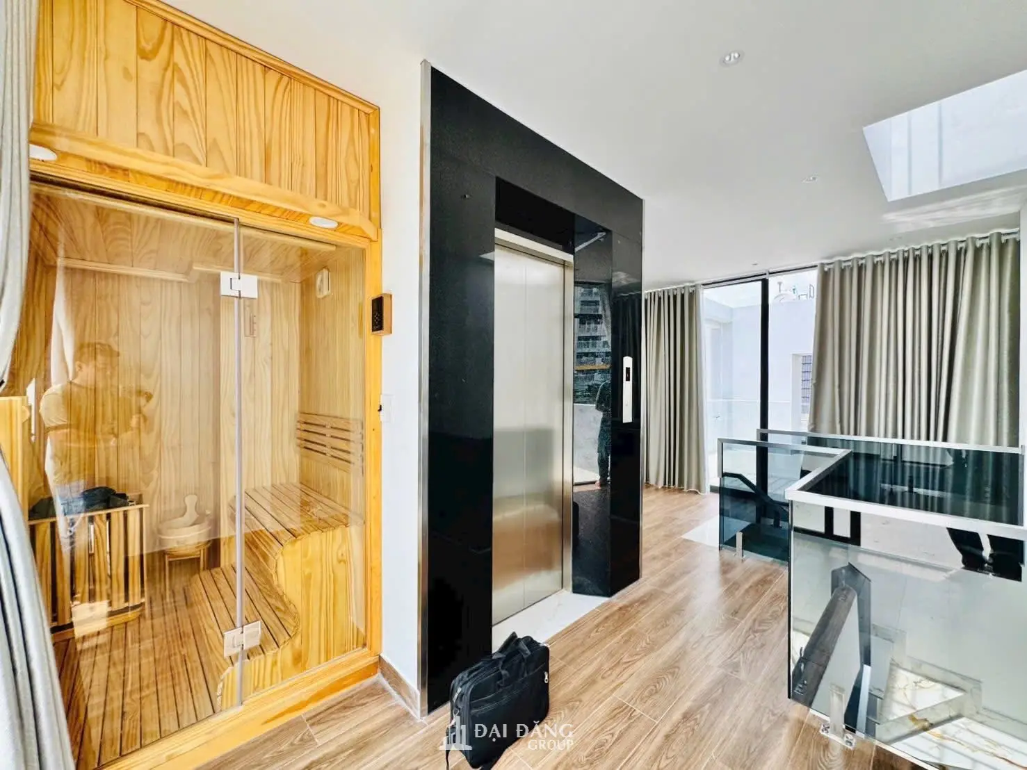 Quy mô: 1 Trệt, 3 Lầu, Sân thượng (Bao gồm: Thang máy kính, 3 Phòng ngủ, 1 Phòng xông hơi, 1 Sky Bar).