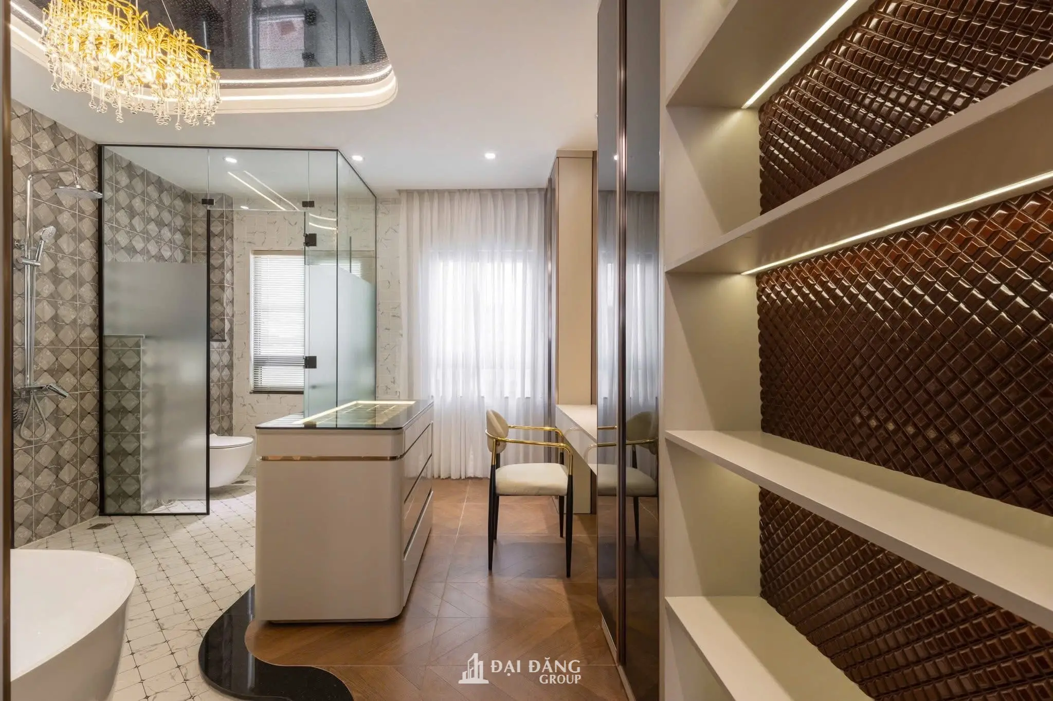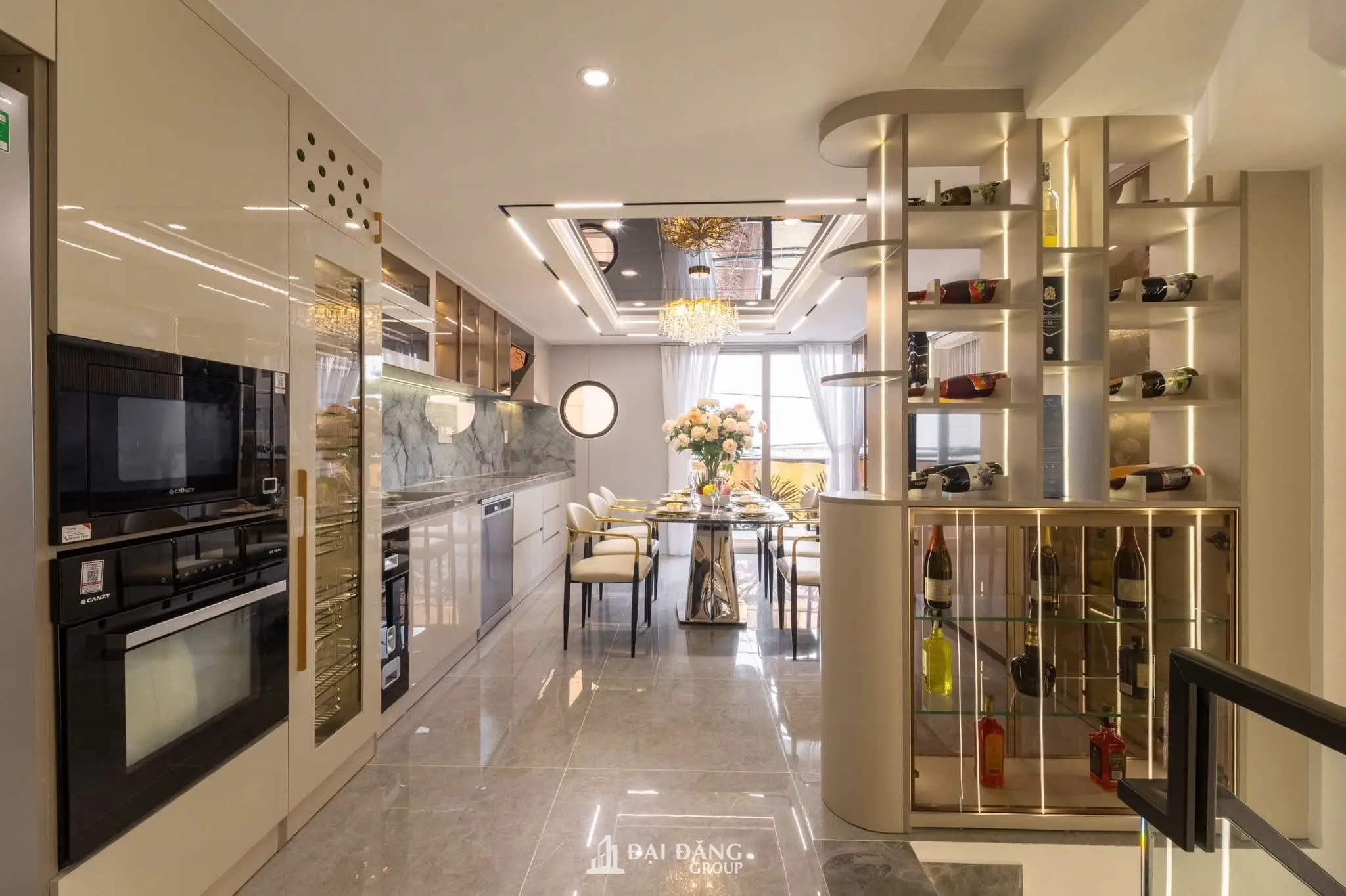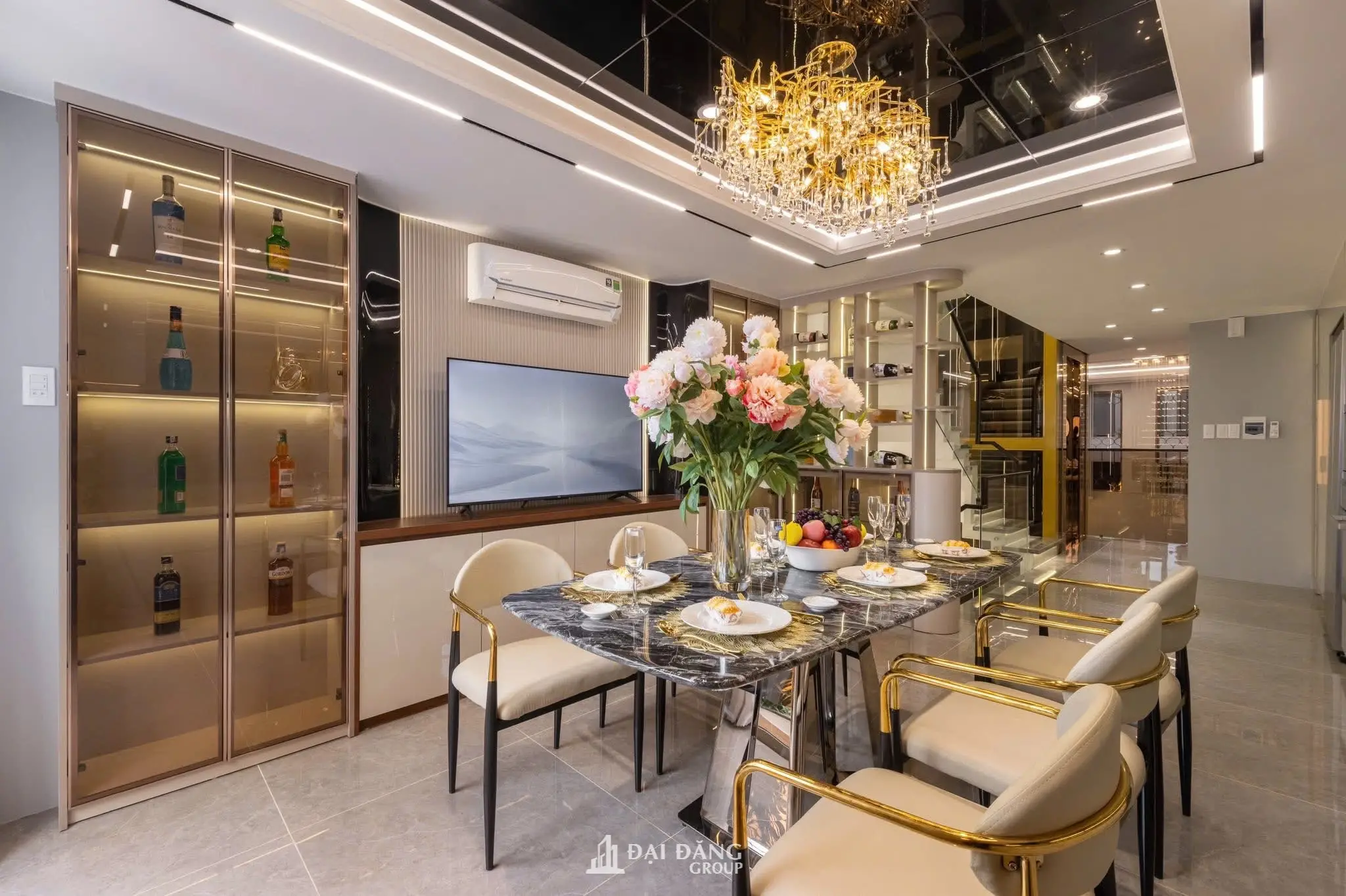 Mọi chi tiết trong bản thiết kế nội thất nhà phố của Anh Tuấn đều được “đo ni đóng giày” tại xưởng sản xuất trực tiếp của Đại Đăng Group, đảm bảo sự vừa vặn tuyệt đối: