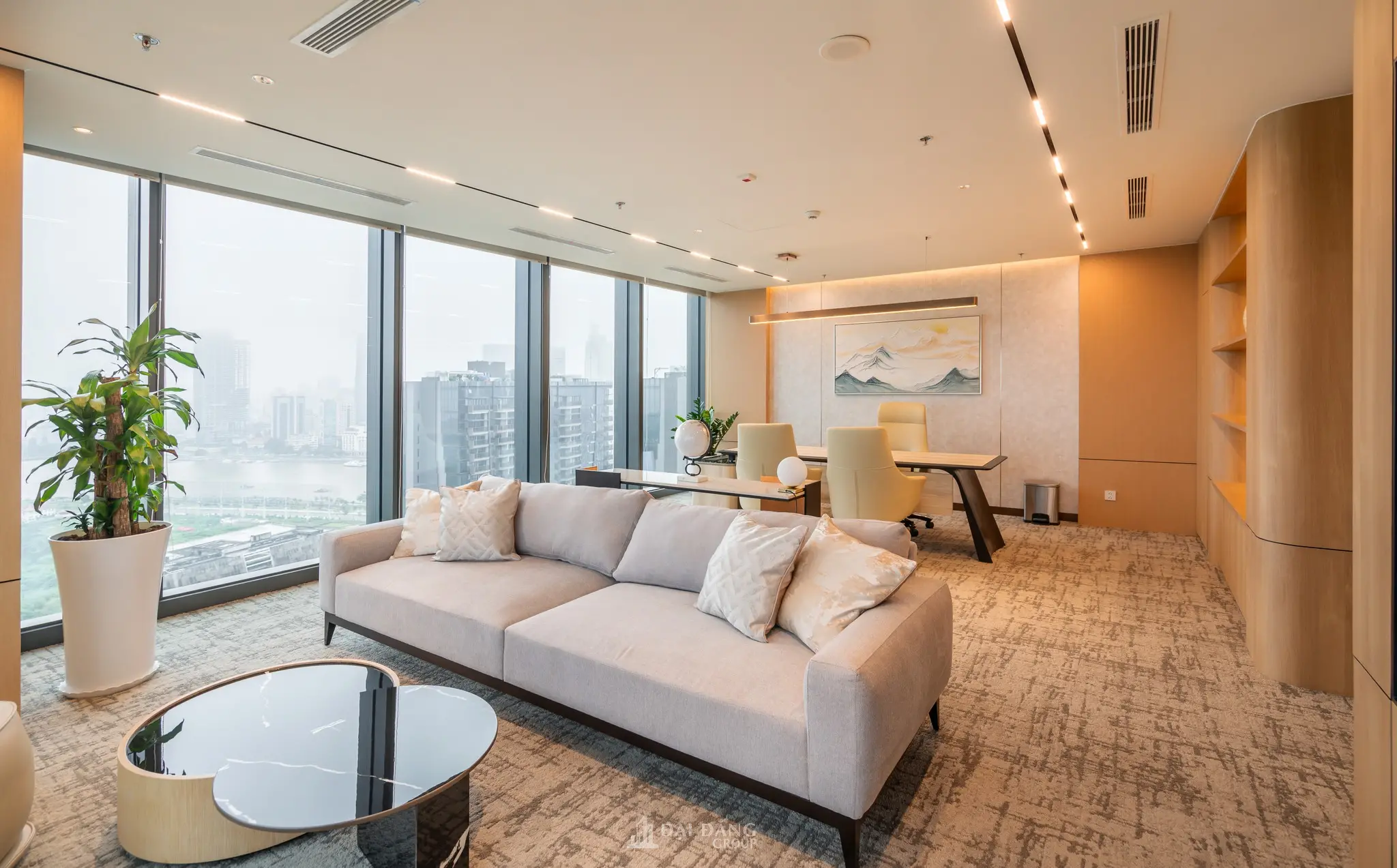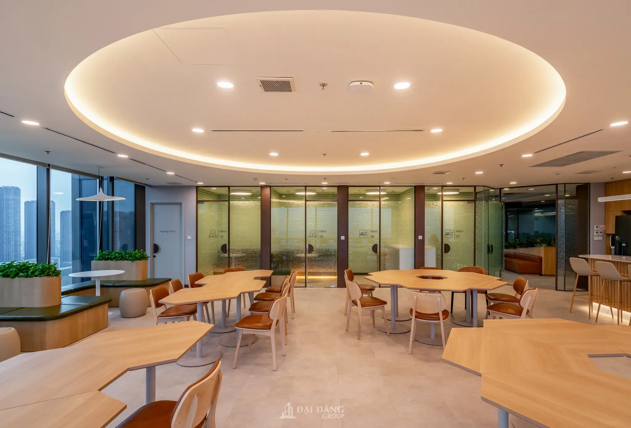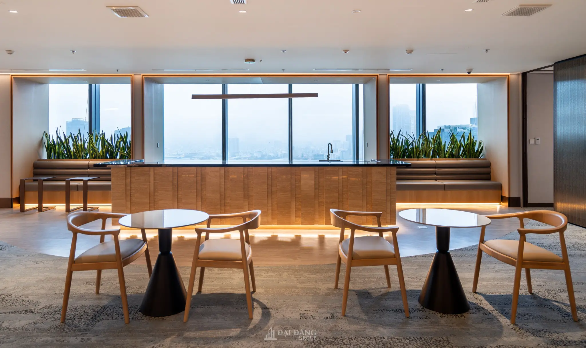 Bên cạnh đó, giải pháp thiết kế văn phòng linh hoạt còn giúp chủ đầu tư tối ưu hóa chi phí điện năng thông qua hệ thống chiếu sáng thông minh và tận dụng tối đa ánh sáng tự nhiên từ các ô cửa kính lớn.
