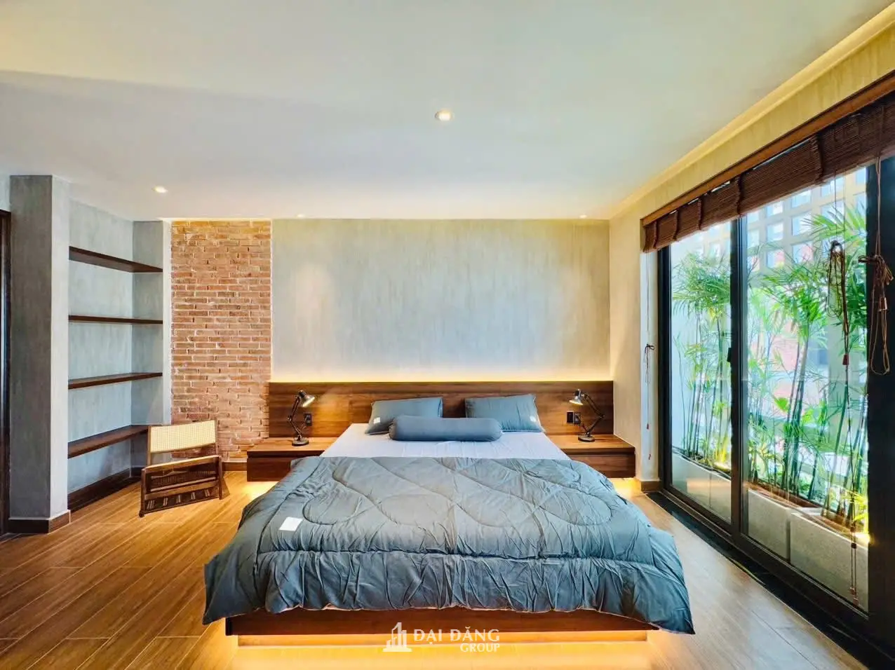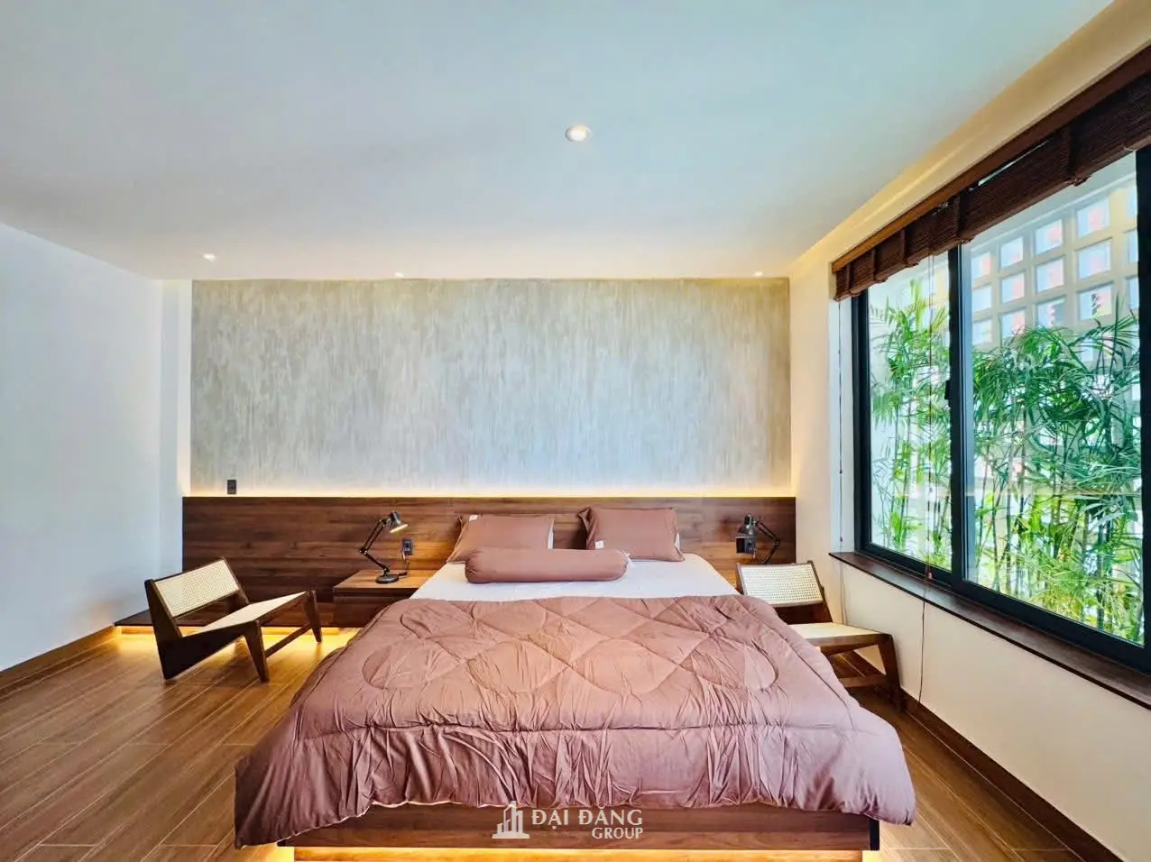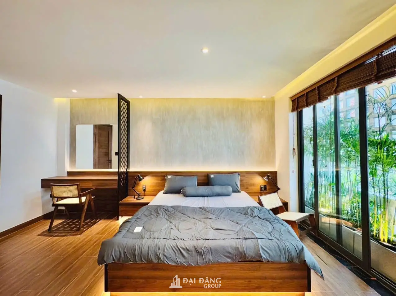 View: Cửa sổ lớn nhìn ra giàn tre trúc và gạch bông gió, mang thiên nhiên vào tận giường ngủ.