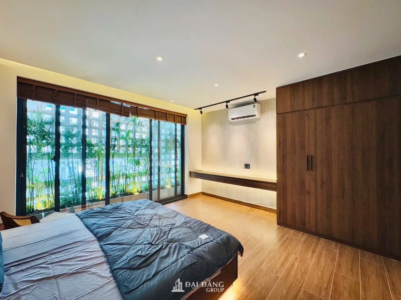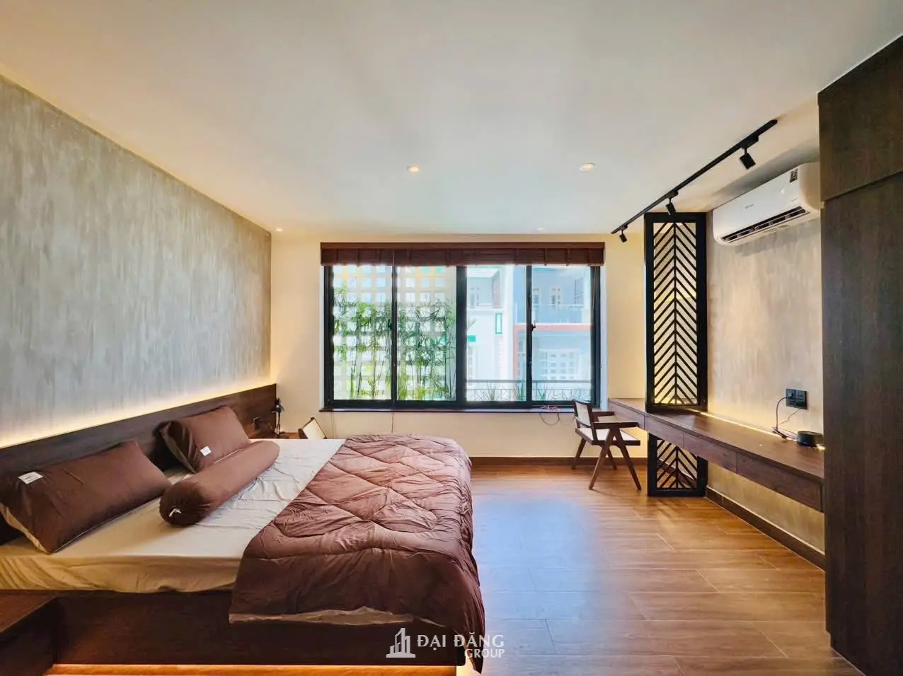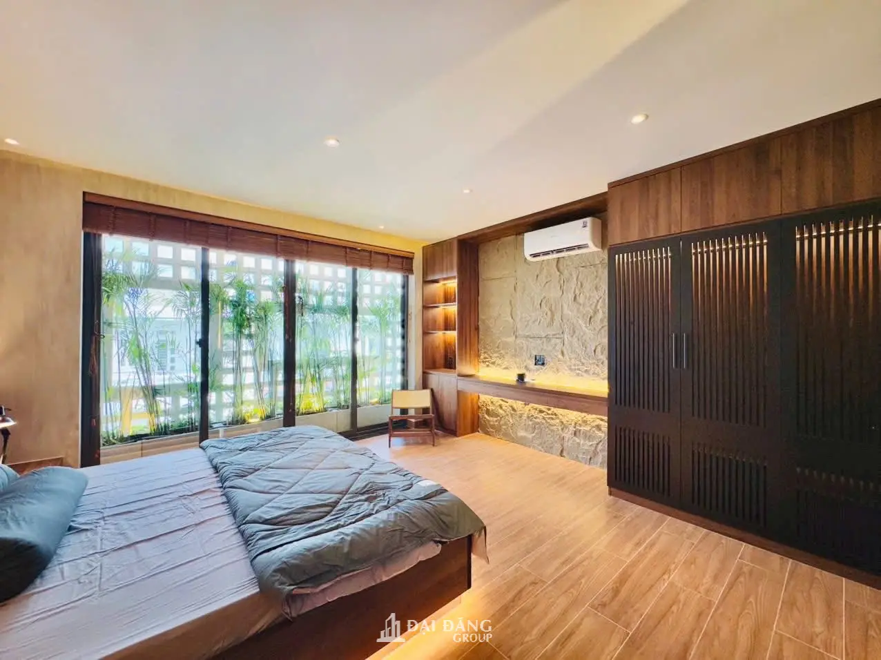 View: Cửa sổ lớn nhìn ra giàn tre trúc và gạch bông gió, mang thiên nhiên vào tận giường ngủ.